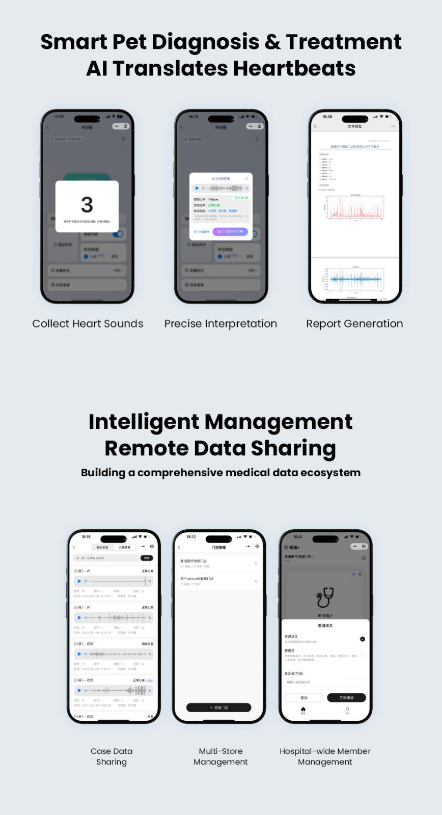 Portable Cardiology Vet Stethoscope AI Smart Electronic Digital Dog Clinic Precise Interpretation